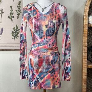 Vintage Y2k Apple Bottom Hooded Knit Mini Dress Sexy Streetwear Grunge Gyaru S