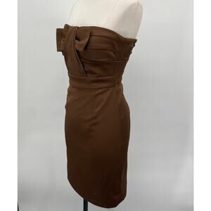 Vintage Y2k BCBG Mini Dress Strapless Bow Bodice Bodycon Twill Brown Womens 0