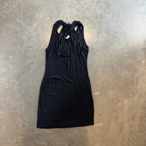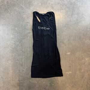 Vintage Y2k Bebe Mcbling Black Rhinestone Ribbed Knit Summer Tank Top Dress M
