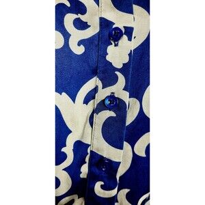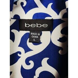 The Vintage Y2k Bebe Silk Cobalt Grey Puff Sleeve Scroll Logo AOP Belted Blouse in size M/L is a stylish and unique piece of women's vintage clothing. Made from a luxurious silk blend material, with cobalt blue buttons, this blouse features ruched puff sleeves and a scroll logo design that exudes a 1990s Y2k vibe. The belted waist adds a modern touch to the classic shirt style, making it a versatile and eye-catching addition to any wardrobe. Size is marked large fits a modern M/L please refer to measurements for accurate fit.