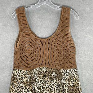 Vintage Y2k Camisole Babydoll Top L Crochet Leopard Taupe Sheer Flowy Boho Fairy