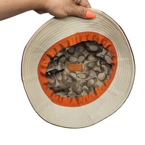 This is an incredibly rare matching set of Coach pieces. You can easily find the patchwork era pieces, but not this specific color set. Extremely minimal wear and nearly new overall. One white teeny tiny dot on the top of the hat shown in photos on the red burgundy suede, one faint light scratch on one of the brown leather patches, a small pen mark on the wallet shown in photos and a couple very very faint spots of discoloration on the wallet on the exterior. Otherwise truly like new. Combination of soft leather, suede & canvas. Don't pass on this staple for your summer wardrobe!!