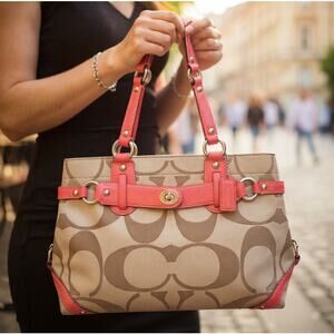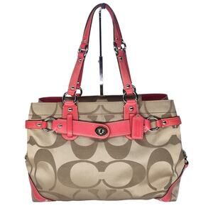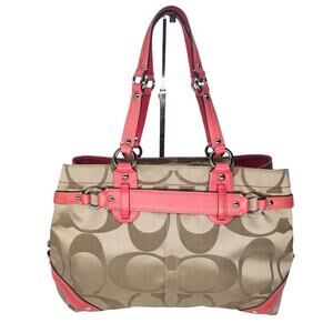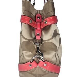 Vintage Y2k Coach Purse 2008 Coral Pink Tan Shoulder Signature Canvas Leather