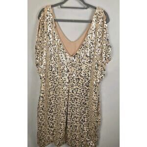 The Vintage Y2k DEB Rose Gold Sequin Stretchy Mini Glam Club Dress in size 3X features a double V-neckline, short sleeves, and a pullover closure. This dress is perfect for various occasions such as travel, weddings, parties, or formal events. The rose gold sequin pattern adds a touch of glamour and princess-like style, making it a standout piece for those who love retro and clubwear fashion. The plus size design and stretchy material ensure a comfortable and flattering fit for women looking to make a statement with their outfit.