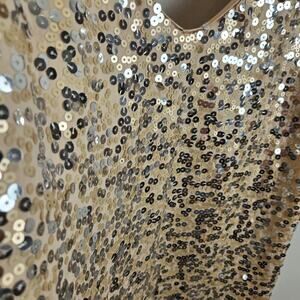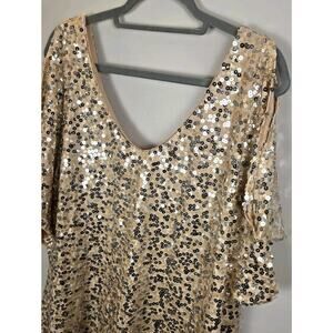 Vintage Y2k DEB Rose Gold Sequin Stretchy Mini Glam Club Dress 3X Double V Neck