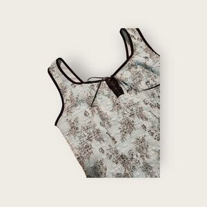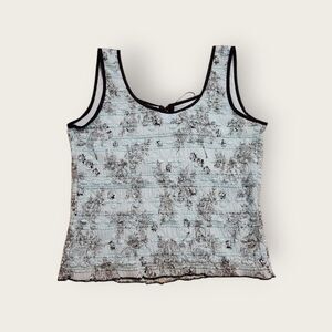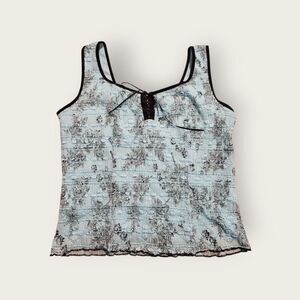 Vintage Y2k Dressbarn blue and black tie up slightly cropped floral tank top L