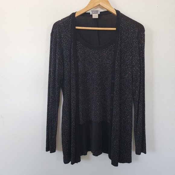 Vintage Y2k Expo Slinky Layered Shirt Cardigan Sparkle Holiday Size 8