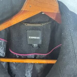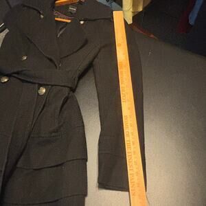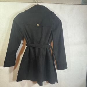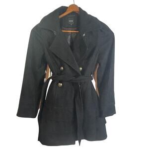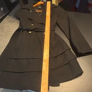 Vintage Y2k Express Black Wool Belted Ruffle Tiered Bottom Coat Trench Sz Medium