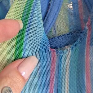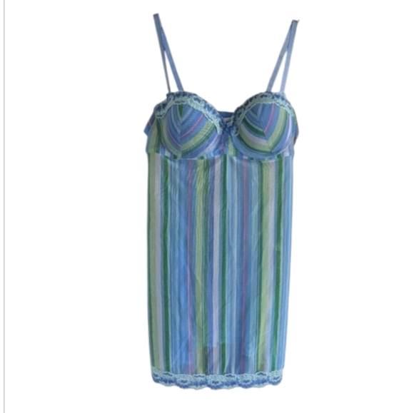 Vintage Rampage Medium Y2K Sheer Bustier Mini Slip Blue Stripe Mesh Chemise