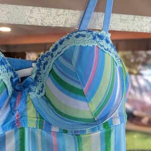 Vintage Y2k Fairy Rampage Medium Slip Striped Bustier Blue Green Chemise