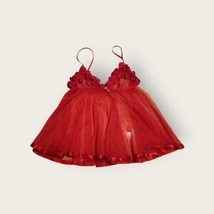 Vintage Y2k Frederick's of Hollywood red floral bodice sheer babydoll camisole