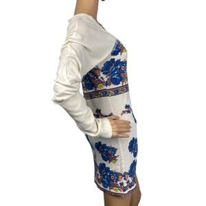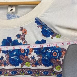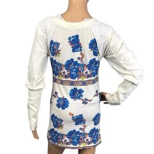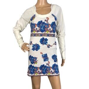 Vintage 90’s Y2K Free People tunic dress in a fitted silhouette with delicate lace detail along the neckline. Colorful Floral Print Retro boho vibe, perfect for layering or wearing on its own. Size L.
