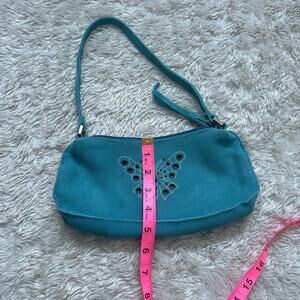 Vintage Y2k Genuine Suede Blue Studded Rivet Butterfly Purse Handbag