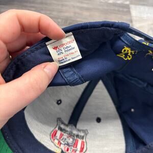 Vintage Yupoong Y2k Good Year Tires Blue Yellow OS SnapbackTires 63rd Soapbox Derby Hat, In good pre-owned condition, adjustable snap back strap embroidered logo green panel inside polyester and cotton blend casual sporty classic baseball hat cap.