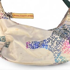 Super cute harajuku lovers bag! I got this in 2006 ! small stains that are removable on exterior, interior is clean and has no flaws.