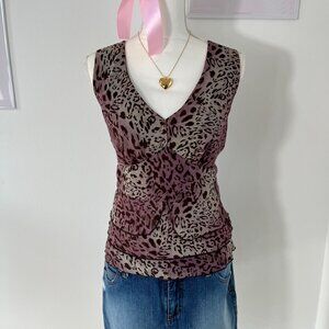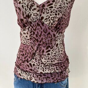 Vintage Y2k I.N. Studio Cheetah Animal Print Babydoll Ruffle Cami Top Womens M