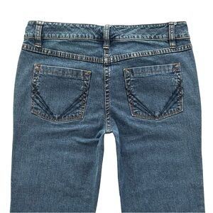 Perfect low rise 2000s jeans warm toned light-medium wash denim with embroidered detail pockets! In amazing condition, no signs of wear at all. Tagged women’s 4, but runs smaller - measures 15” across waist (no stretch), 8” rise, 32” inseam