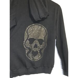 Vintage Y2k Inspo Me.N.U Black Skull Zip Hoodie Size XL