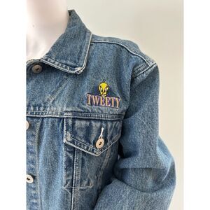 Vintage Y2k Looney Tunes Tweety Bird Jean Jacket Blue Denim size Large