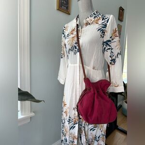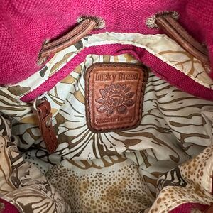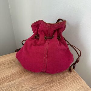 Vintage Y2k Lucky Brand Red Canvas & Leather Tote Bucket Bag Crossbody Purse