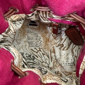Good pre-owned condition! Has some fraying on the strap, pilling and some leather missing on drawstring closure Hardly noticeable when worn. Spotless interior.