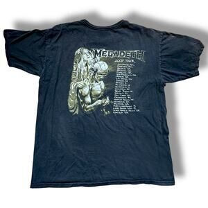 Style notes: tshirt, 90s, 1990s, 2000s, heavy metal, thrash, thrashed, concert, band, tour only merch, rare, dave mustaine, metallica,