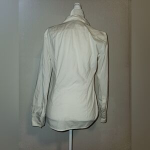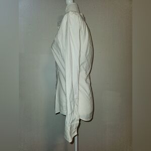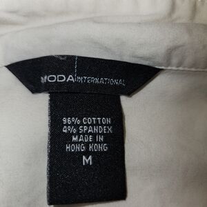 Good used condition Moda International sold by Victoria's Secret long sleeve white button down. Slim cut shirt, darts in bust, and stretch so it fits your shape well. Finished shirt tail hems. Vintage from the Y2k era.