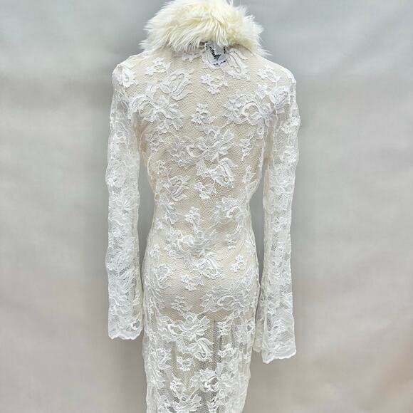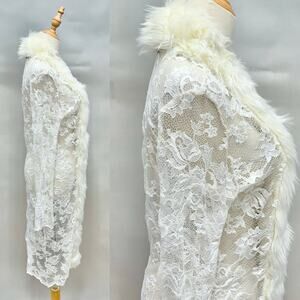 Vintage Y2k Moda International White Lace Duster Faux Fur Trim Sz XS Penny Lane
