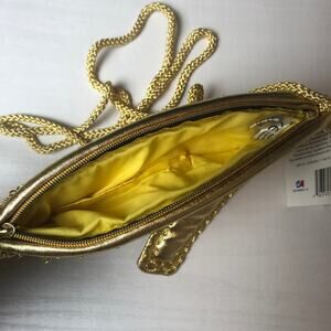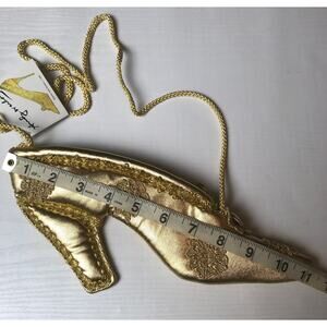 New with tags Vintage Y2K 2000 gold metallic high heel shoe crossbody purse, released by the Andy Warhol foundation for the visual arts. Based off of Warhol's original Babs artwork.