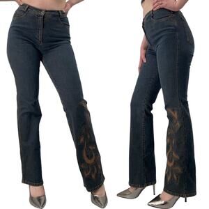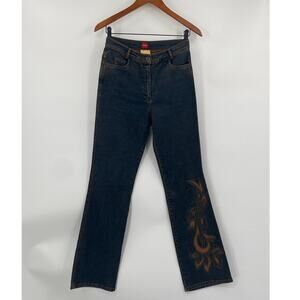 Vintage Y2k Jeans Embroidered Flared Leg High Rise Zipper Fly Pockets Womens 6