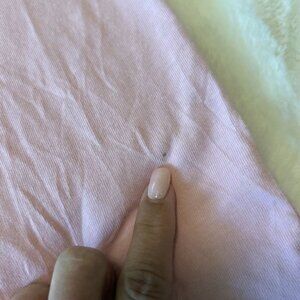 Beautiful pink color with navy ringer round neck and at short sleeves