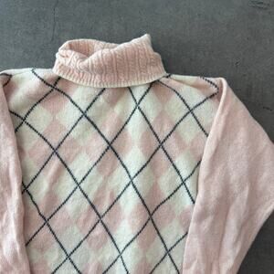 Vintage Y2k Pink Plaid Argyle Coquette Barbiecore Lambs Wool Sweater Medium