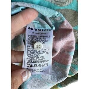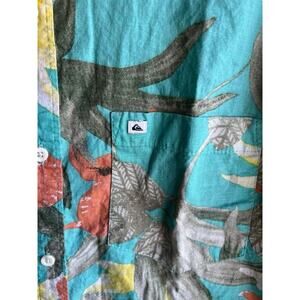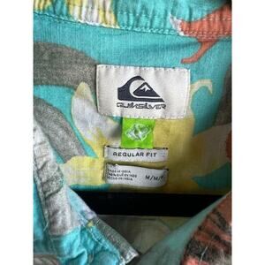 This Vintage Y2k Quicksilver Regular Fit Men's Blue Hawaiian Button Up Shirt in size M is a stylish and comfortable addition to any man's wardrobe. Made from 100% cotton, this shirt features a floral pattern, short sleeves, and a collared neckline with a button-down style. Perfect for travel, parties, or casual wear, this shirt is machine washable, making it easy to care for. The multicolor design with Hawaiian themes brings a beachy, tropical feel to your outfit, making it ideal for all seasons. Quiksilver branding adds a touch of nostalgia to this vintage-inspired piece.