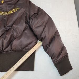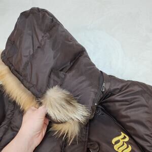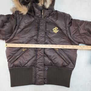 Vintage Y2k Rocawear Jacket Womens XL Down Filled Fur Trim Brown Bomber Brown