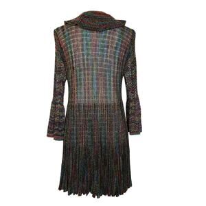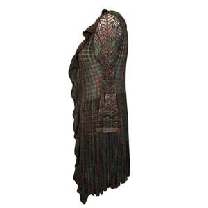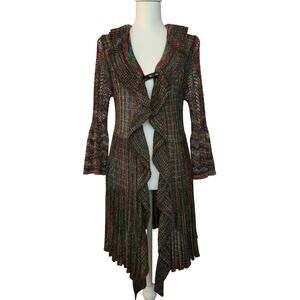Vintage Y2k Ruffle Neck Crochet Knit Duster Cardigan Size M Multicolor Rainbow