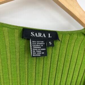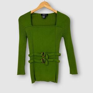 Vintage Y2k SARA I. Green Ribbed Top with Buckle Detail Size Small