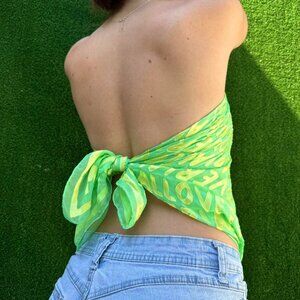 Vintage y2k semi-sheer Moschino logo scarf wrap top💚62” long and 24” wide, could be worn as a top or accessory