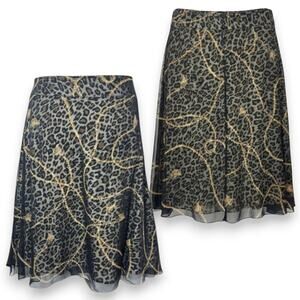 Vintage Y2k Silk Chiffon Midi Skirt 10 Cheetah Dark Fairy Mob Wife Whimsigoth