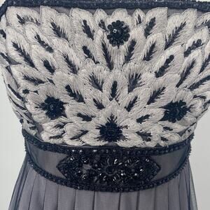 Vintage Y2k Studios W by Sue Wong Embroidered Beaded Fit & Flare Mini Dress Mesh Gray Black