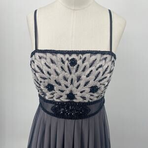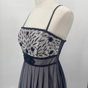 Vintage Y2k Sue Wong Embroidered Beaded Fit & Flare Mini Dress Mesh Gray Black