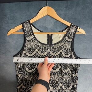 Vintage Y2k Womens Small Lace Sleeveless Biege Black Preppy Tank Top