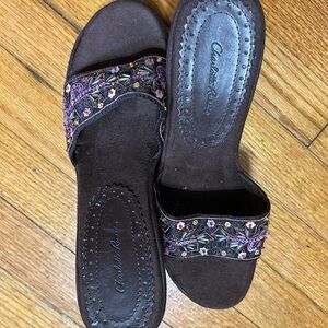Vintage Y2k "charlotte Russe" Embroidered Embellished Sandals Wedges Size Size 9
