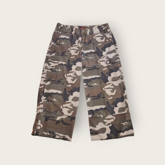 Vintage Y2k early 2000s Mossimo camo print low rise wide leg denim capri pants