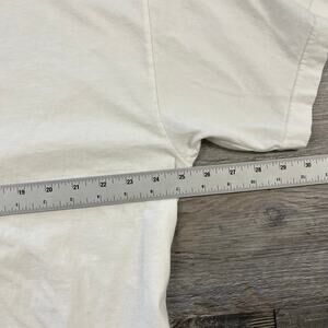 In excellent pre-owned condition, white black yellow colorway crew neck short-sleeve cotton knit fabric made in El Salvador, graphic motor racer graphic tee classic casual everyday streetwear.