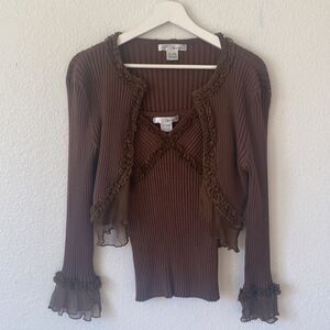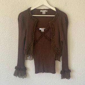 Vintage Y2k wd ny Brown Ribbed Long Sleeve Cardigan and Tank Top Set