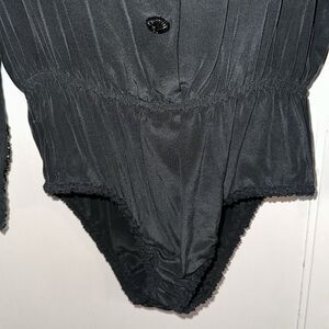 Vintage late 80s/early 90s YL by Yair black silk long sleeve bodysuit with beaded collar, cuffs & buttons