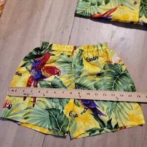 Vintage YMLA Shorts Set Cartegena Colombia Tropical Parrots Silk Feel Sz Boys 10