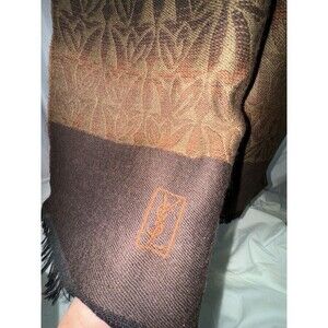 Elevate your winter wardrobe with this vintage YSL scarf in brown. Made of 100% wool and crafted in France, this unisex rectangle scarf features a stylish fringe design and a logo of luxury. The scarf is perfect for keeping you warm during the chilly winter months, and it can also be worn as a neck warmer for added comfort.
