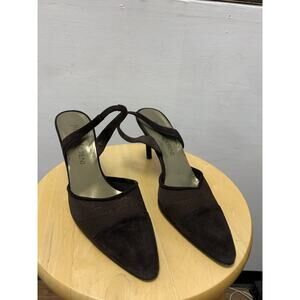 Vintage YSL Yves Saint Laurent Brown Sling back Kitten Heels Size 9