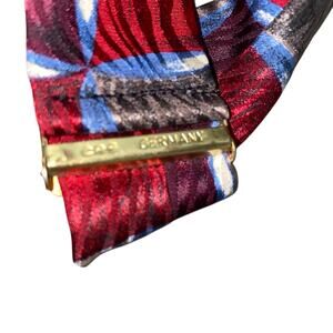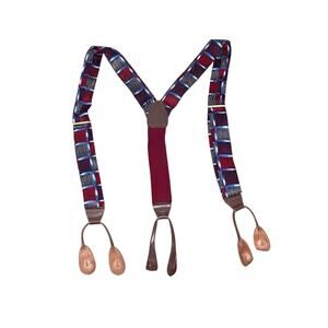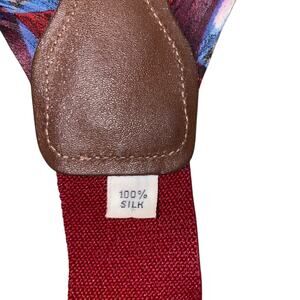 Vintage Y-Shaped 100% Silk Abstract Print Adjustable Suspenders Burgundy Blue